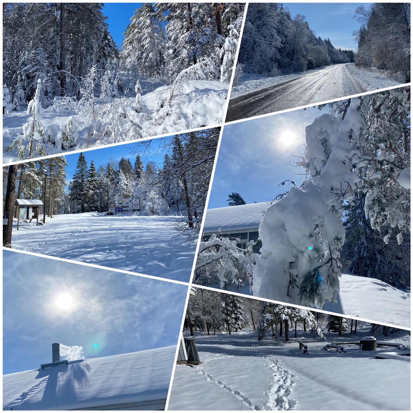 Själv roade jag mig med att fixa till och iordningsställa lite tävlingsmaterial inför kommande arrangemang. Jag var mycket ensam i Skidstugan och jag såg inga vandrare, hundrastare eller motionärer i området. Dubbskorna fanns på fötterna vilket var klart bra på det isiga underlaget. Men solen sken och jag dröjde mig kvar på "ljugarbänken" lyssnande på ljudbok via airpodsen. Det bkev en skön timma!