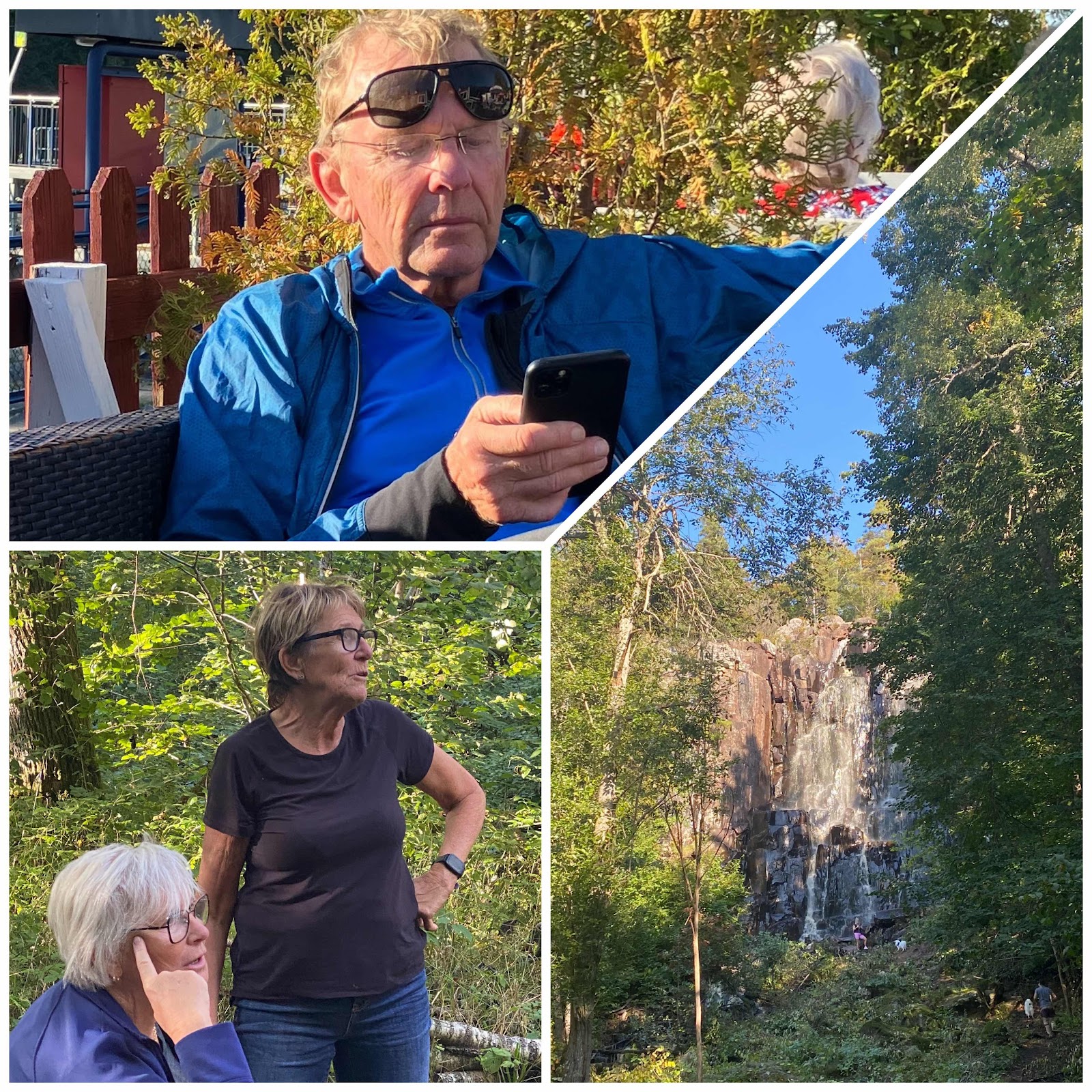 Det underbart fina höstvädret under fredagen inbjöd till en lång cykeltur. Vi skippade spinningpasset på gymmet och drog iväg till Skäktefallet där vattenmassorna kastar sig utför platåberget Halleberg.