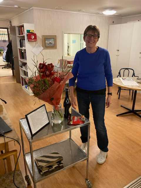 Vid julavslutningen tidigare i veckan fick hon många lovord och belönades/uppvaktades med blommor och annat ... välförtjänt tycker jag för jag har på nära håll sett allt jobb som krävts och gjorts.