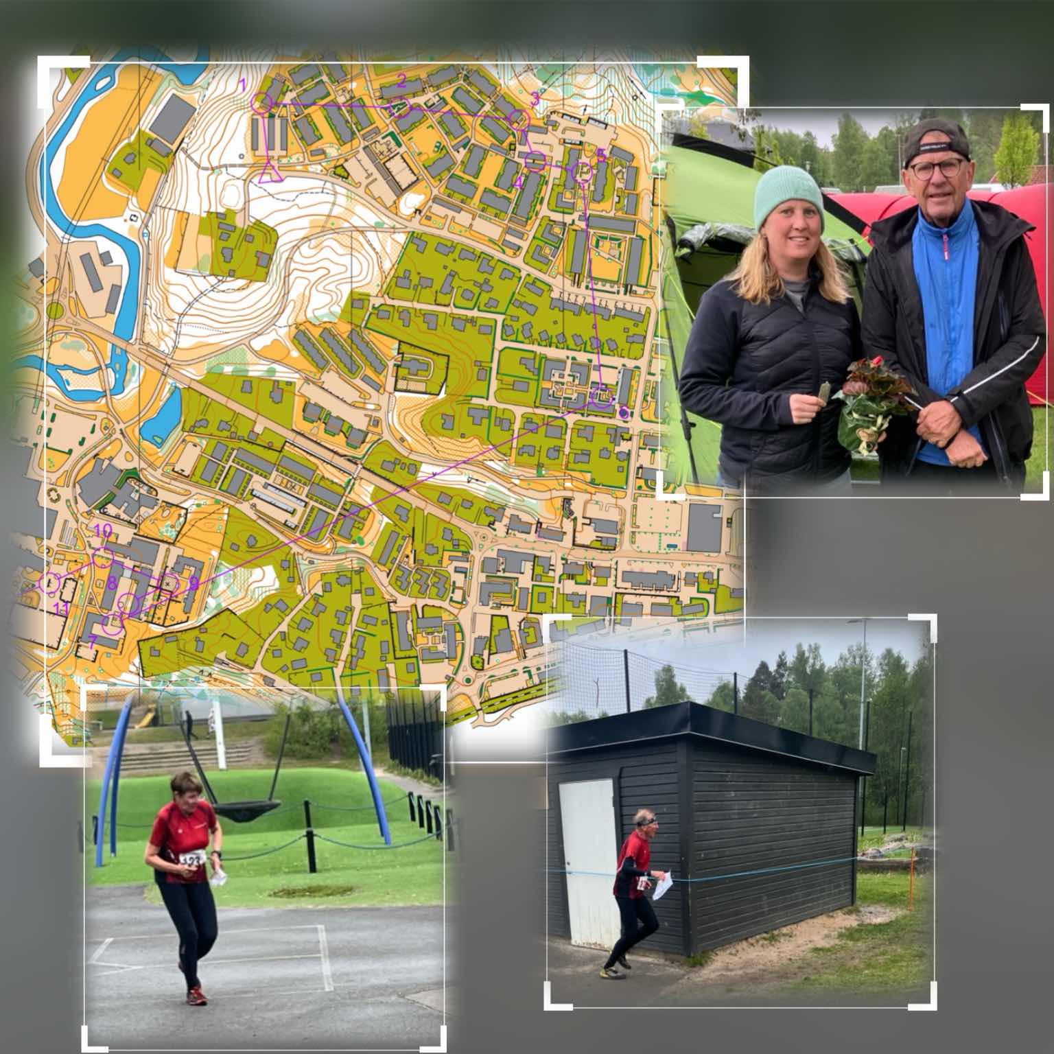 Gunilla tog steget upp i den äldsta herrklassen och vi bildade lag. Favorittippade ... nej, nej! Redan vid startpunkten hände något. De gamla rutinerade herrarna drog iväg men Gunilla bromsade in ... tog ett eget vägval till första kontrollen. Ett lyckosamt drag visade det sig. Hon kom till växlingen som första lag ... jag förvaltade ledningen på den andra sträckan och så gjorde också Gunilla på den tredje. På slutsträckan gällde det bara att ha koll på läget och inte förhasta sig ... det funkade och när mållinjen passerades gjorde vi det som vinnare ... mycket överraskande och oväntat! Smart av Gunilla att inte försöka hänga på de mera snabbfotade herrarna från startpunkten. Än en gång kan konstateras att inom idrotten kan allting hända ...kul!