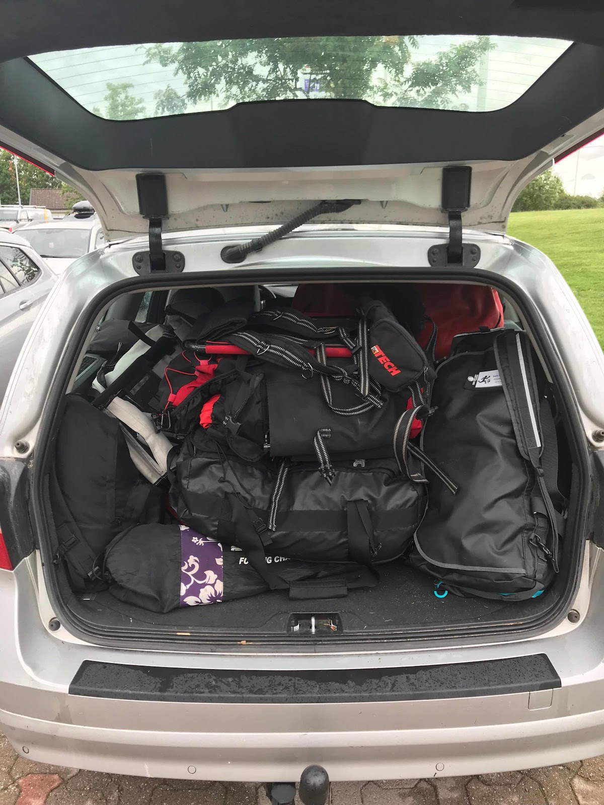 Ett bilbyte har varit på gång under våren. V70:an hade samlat på sig ett tiotal år och många mil. Naturligtvis har samtal förts vad gäller bilmärken och storlek. Hustrun hävdade med bestämdhet att vi inte längre behövde en stor bil med rejält tilltaget bagageutrymme. Jag var inte lika övertygad. Genom åren har många väskor pusslats och packats in under en och annan svordom och mycket pust och suck. Det handlar då inte bara om de egna väskorna utan om barn, barnbarns och andras väskor och orienteringsryggor. I ärlighetens namn har jag hittills aldrig upplevt att det blivit gott om plats över någon enda gång. Därför bidade jag min tid tills det var dags att fatta beslut. Detta råkade inträffa när det var dubbelsprinttävling i Götene. Fotade aktern på bilen och bilden bekräftade tesen att en bild säger mer än tusen ord.