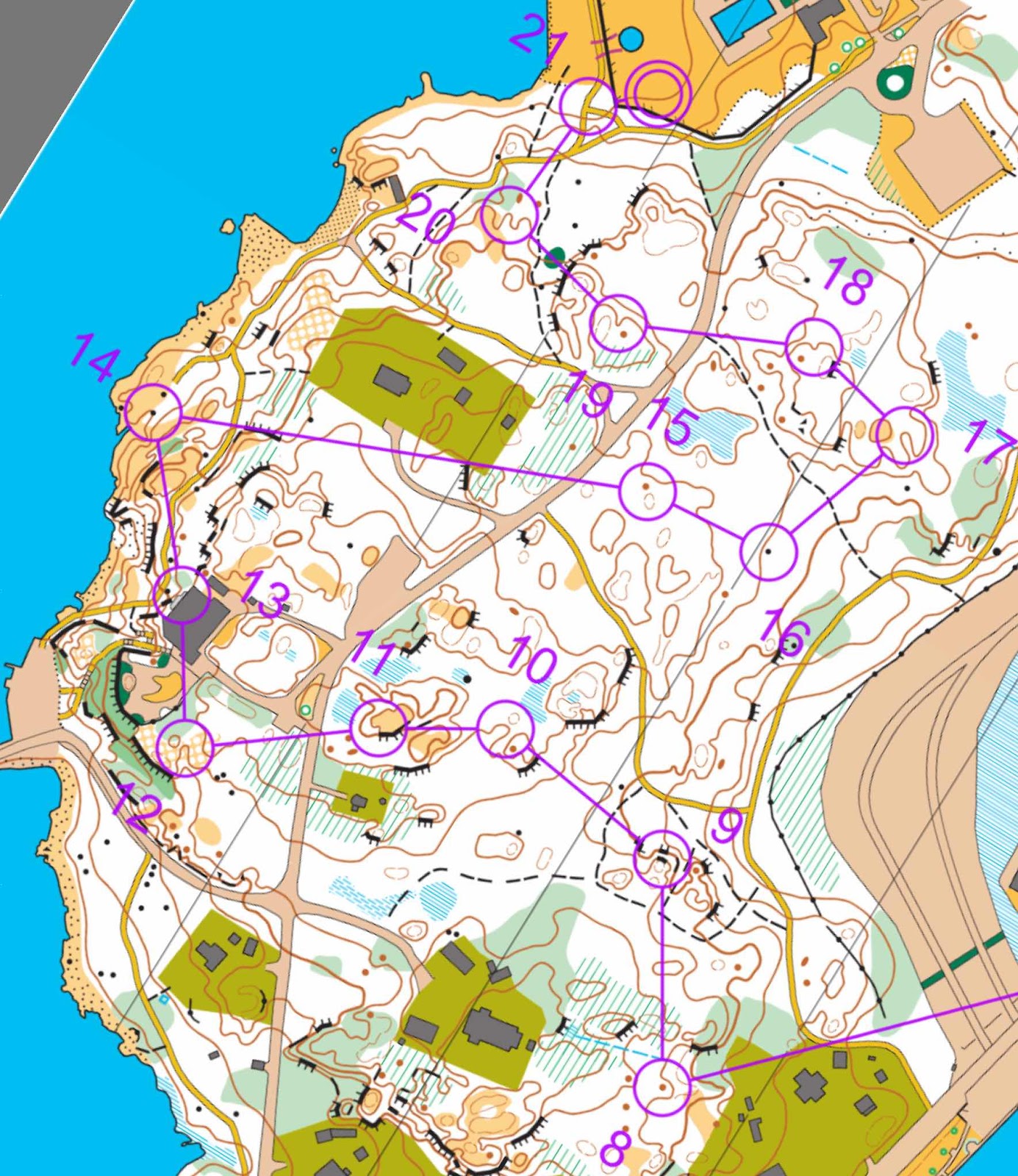 Imorgon väntar långdistans och arrangören meddelar att det handlar om mycket detaljrik kustterräng, måttlig kupering med en del partier med stora höjdskillnader. Terrängen är omväxlande, storstammig bokskog, hällmarkspartier, tallskog, småskuren klippterräng vid kusten.
