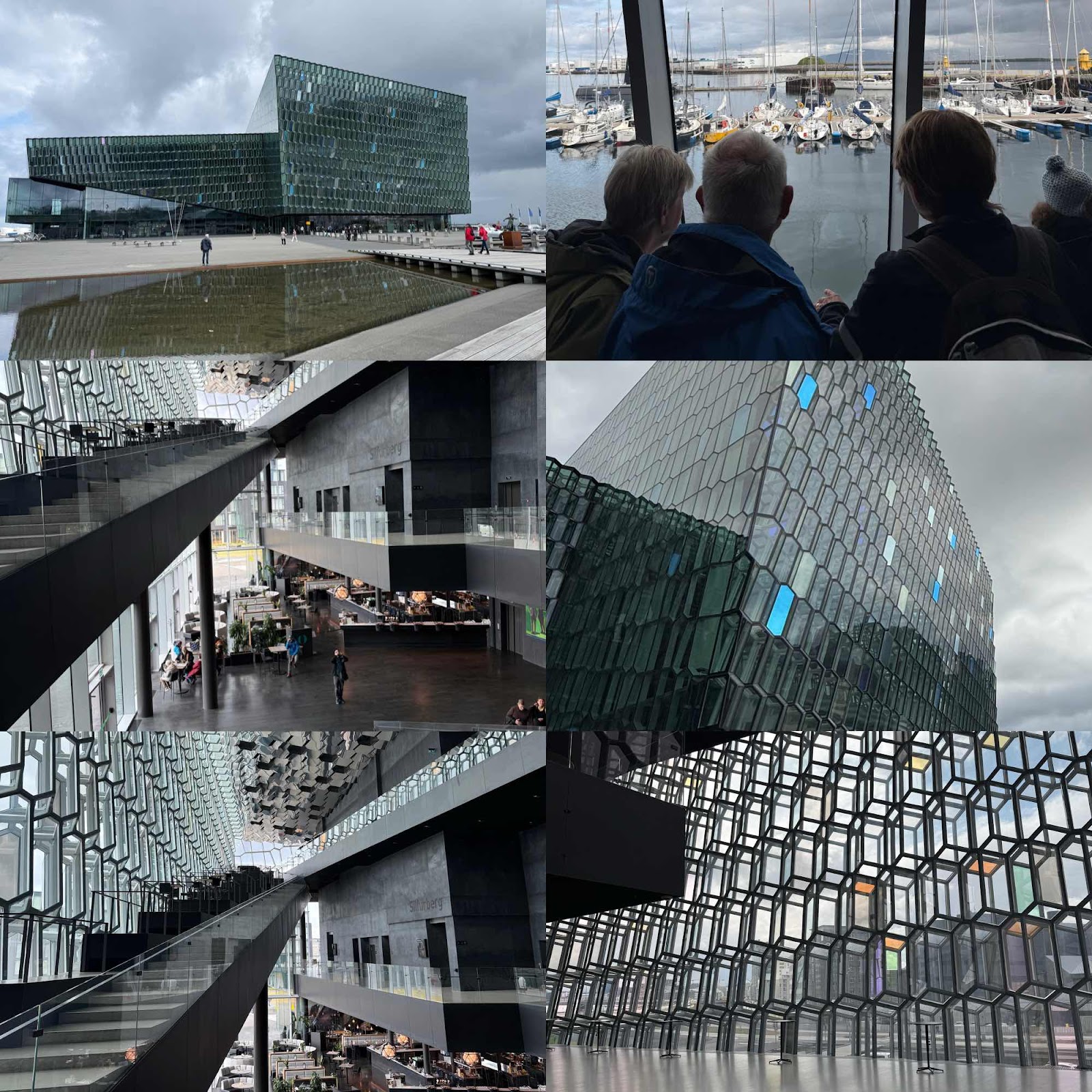 Många blev stegen igår när vi traskade runt i Reykjavik. Första stoppet blev vid och inne i det spektakulära konserthuset "Harpa". Oj vilken spännande arkitektur!